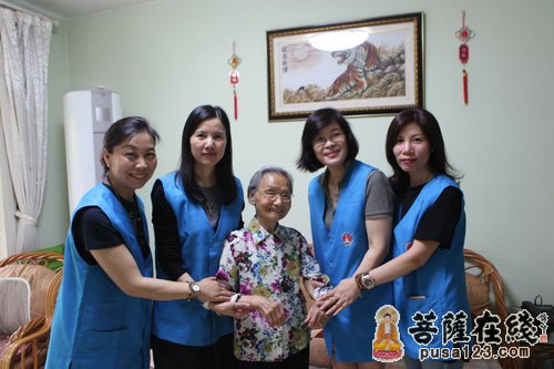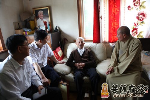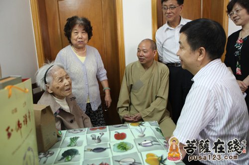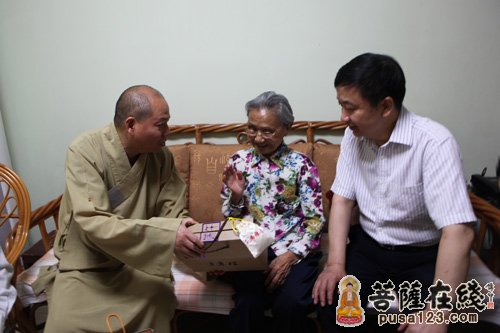 活动当天觉群慈爱功德会常务副理事长春法师与各位爱心人士一行来到了普陀区的部分百岁老人家中,为他们送上由玉佛寺自制的素粽礼盒和素食大礼包,希望寺院和爱心人士的这份心意能在酷暑季节给老人们带来吉祥与清凉。这些百岁老人,退休前都是在一线岗位从事操作的劳务工人,他们在不同的岗位上为上海的发展做出了自己应有的贡献,退休之后又和睦邻里、为人随和,赢得大家的尊重。现在他们年届百岁,基本生活仍能自理,思路清晰,看到法师与功德会人员登门送爱心,非常愉快,畅谈不已,家家洋溢着和谐的气氛。