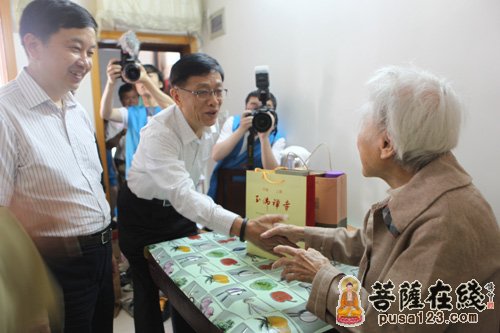 每年的农历五月初五是中国的传统节日——端午节。值此佳节,2015年6月18日上海玉佛寺觉群慈爱功德会延续慈善爱心路程,联合上海市老年基金会举行了“情系夕阳-端午送关怀”的慈善活动。受玉佛禅寺方丈觉醒大和尚委派,由觉群慈爱功德会各位副理事长带队汇同功德会各法师分成三组,分别探望百岁老人及普陀、静安两区福利院的老人,将爱传递给他们。本次“情系夕阳-端午送关怀”爱心活动受到了社会各界爱心人士的关注,觉群慈爱功德会常务副理事长长春法师、上海市老年基金会甘维刚理事、蔡志荣理事、功德会副理事长杨文瑛居士、许建华居士、马玉红居士、徐国珍居士、薛宝中居士及常务理事代表为本次活动提供了大力支持。