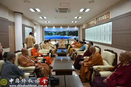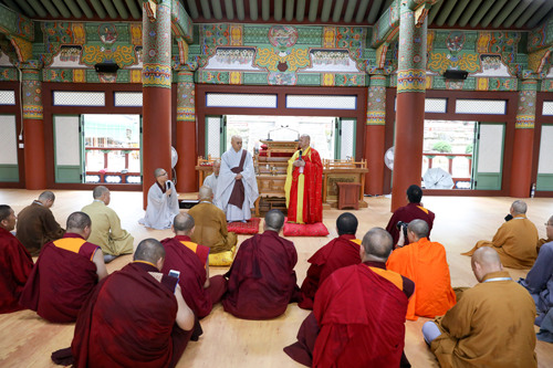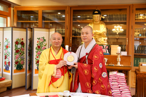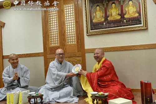 之后,代表团一行访问韩国真觉宗统理院,受到真觉宗统理院院长悔省法师的热情接待。双方在座谈交流中,回顾了友好交往的历史,并就韩国真觉宗的密宗传承和教义教理等进行交流探讨。座谈会后,真觉宗统理院设宴招待中国佛教代表团一行。