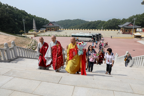 9月8日至11日,中国佛教代表团一行在韩国首尔成功出席第20次韩中日佛教友好交流会议之后,由代表团首席代表明生法师与代表团秘书长普正法师率领,对韩国曹溪宗、天台宗、真觉宗等各大宗派和有关寺院进行友好访问交流。代表团一行在紧锣密鼓的访问行程中风雨无阻,短短四天时间,自首尔下清州,上庆州至釜山,先后深入八家韩国佛教著名道场访问交流:曹溪宗曹溪寺、法住寺、佛国寺、梵鱼寺,天台宗大光寺、三光寺,真觉宗统理院及石窟庵。