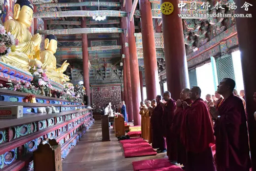 8日上午,中国佛教代表团一行首先访问韩国曹溪宗总本山曹溪寺,受到曹溪寺住持智贤法师的热情接待。代表团在曹溪寺大雄殿内按佛教传统举行了诵经礼佛仪式,之后双方进行座谈交流。明生法师说,来到曹溪寺倍感亲切,因为中韩曹溪宗同根同源,一脉相承。第20次韩中日佛教友好交流会议取得圆满成功,要以此契机,继承发扬赵朴初等前辈大德为法忘躯、利济众生的精神,继往开来,紧密合作,共同为佛教发展、社会进步与世界和平作出新贡献。