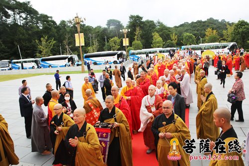 雪窦巍巍高朋来,千秋法筵今日开。2016年10月12日上午,第十九次中韩日佛教友好交流会议在佛教五大名山——奉化雪窦山龙华广场隆重开幕。