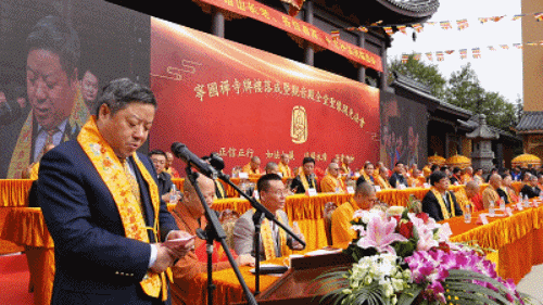 大陆诸山代表中国佛教协会副会长、玉佛禅寺方丈觉醒大和尚对宁国禅寺牌楼落成表示热烈祝贺!他赞叹宁国禅寺历经十年筚路蓝缕、艰辛努力,终于将一座设计优美、殿宇庄严、环境清雅的都市丛林呈现在我们面前。南宋古刹得以佛光再照、生机重现。他深为宁国禅寺近年来的卓越成就而欢喜赞叹,为宁国禅寺面向未来、锐意发展的宏伟蓝图而备感振奋。